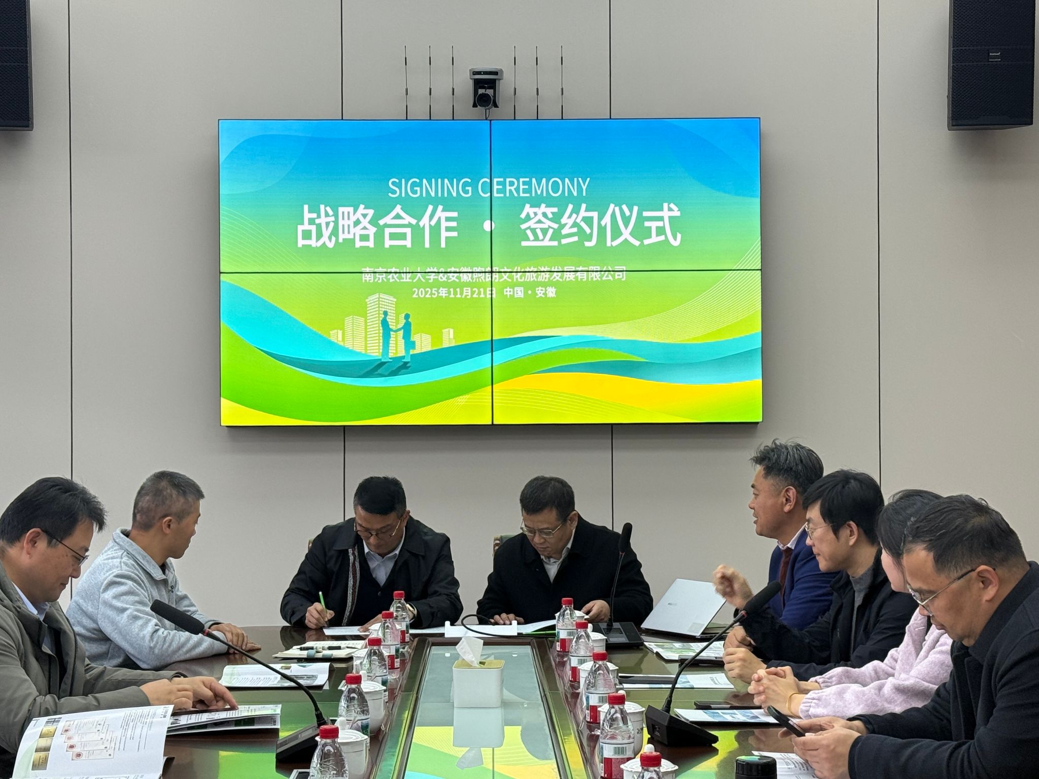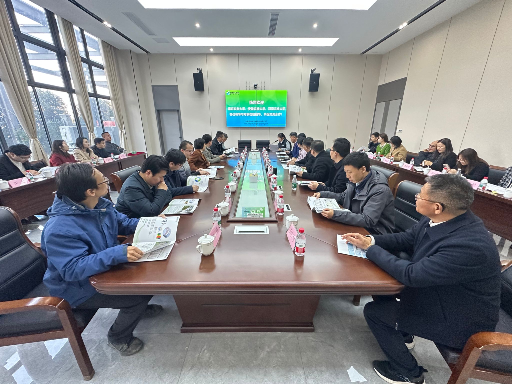 在安徽秀朗新材料科技有限公司和禾檏生态农场,高义凯董事详细介绍了公司生产规模、主营产品和技术研发等情况。校企双方就农业新材料研发、农业人才培养和企业发展的需求进行了深入的交流和探讨,达成了初步的合作意向并签约就业创业实习基地。随后大家实地观摩企业生产流程、考察生态农业种植模式,深入了解新材料技术在农业领域的应用潜力,以及生态农场的绿色种植技术与运营管理经验。