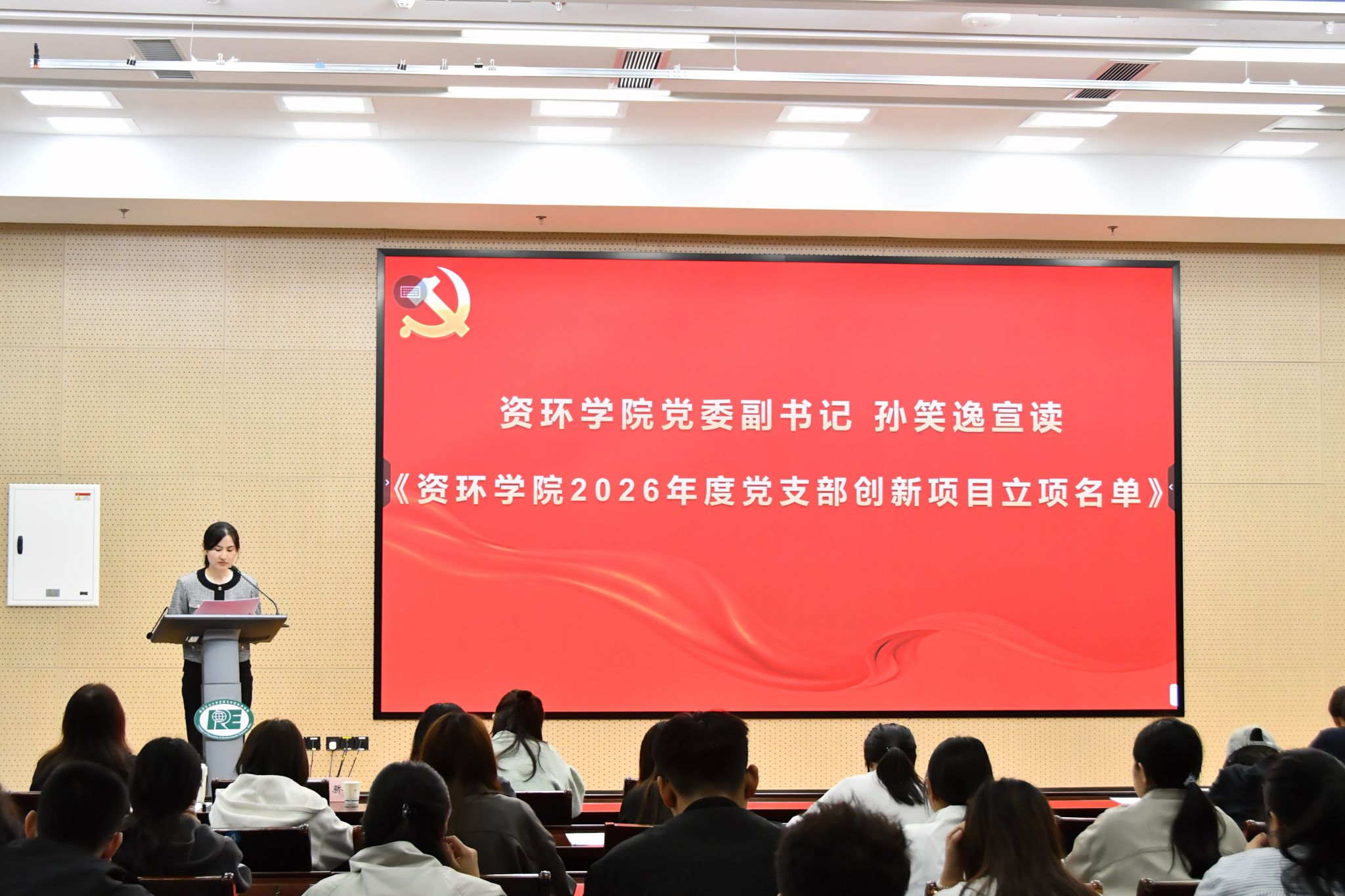 学院党委副书记孙笑逸宣读《资环学院2026年度党支部创新项目立项名单》,明确年度支部创新工作方向,鼓励各支部立足学科特色、聚焦育人实效,以实绩打造亮点党建品牌。