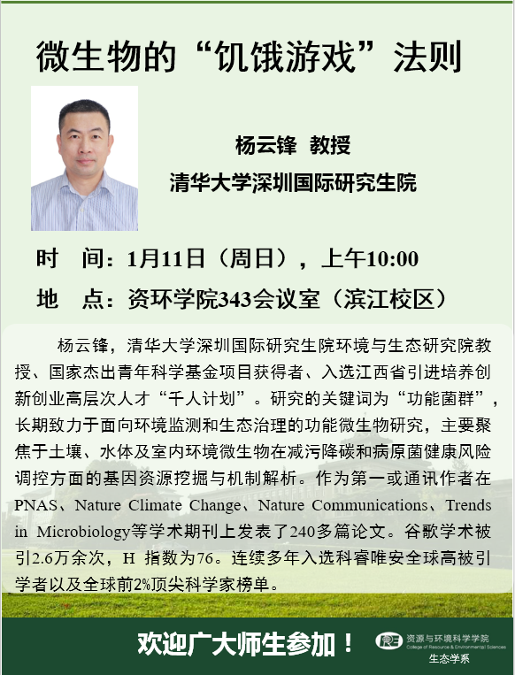 下一篇:张思宇教授学术报告:砷胁迫的微生物组响应机制:元素耦合与抗性传播