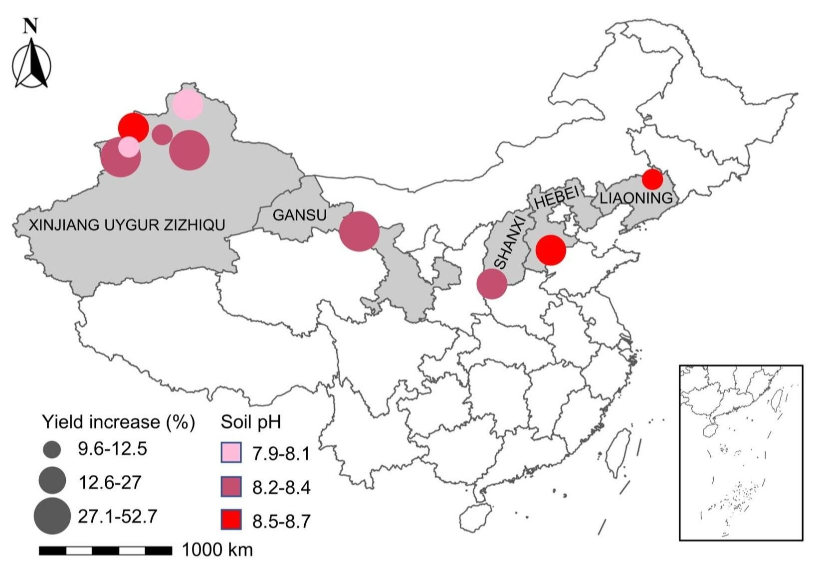 近日,南京农业大学沈其荣院士团队张瑞福教授课题组在Cell Reports上发表了最新研究成果“Siderophore-mediated iron enrichment in the biofilm matrix enhances plant iron nutrition”。该研究以根际益生贝莱斯芽孢杆菌SQR9为研究对象,通过和南宁汉和生物科技股份有限公司开展合作,联合开发的“菌加富”产品在我国北方新疆、甘肃、山西、河北和辽宁五省展开大范围的大田实验,发现菌株SQR9能显著促进不同作物在碱性土壤中生长,平均增产10%以上(图1)。